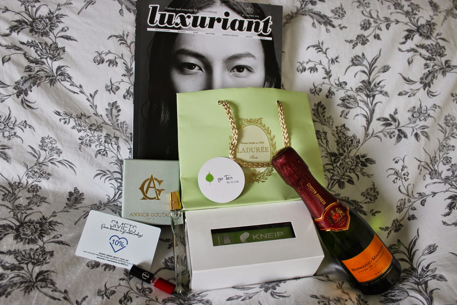 After an hour of theory and taking notes, we all had the opportunity to speak to Emilie and to exchange ideas/opinions/information with other participants who are mostly Bloggers from our Blogger_lu community. Of course, this was the perfect occasion to catch up and gossip a little. Whilst enjoying the chit-chat and the drinks, I also took a photo with the host of this fun class! Each and everyone got spoiled with a lovely goodie bag at the end of the evening. It contained delicious macaroons from Ladurée, a little perfume bottle from the Parfumerie Paris 8, a 10% discount voucher at my favourite store Smets and many more. I'm looking forward to the next class!
